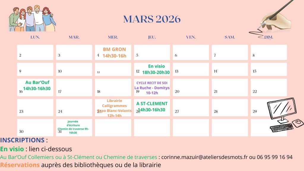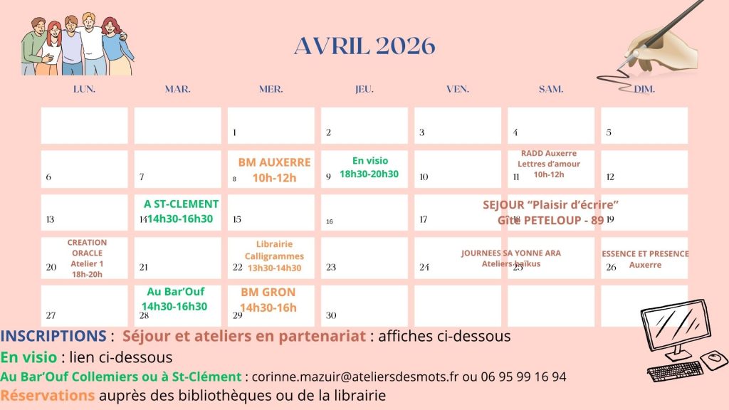 - Stage résidentiel « Plaisir d’écrire » 17-19 avril 2026
